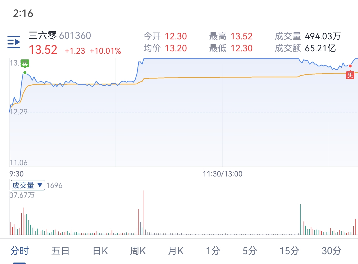 $三六零(SH601360)$ 这个时候还在洗,服了!接回上午出的部分。