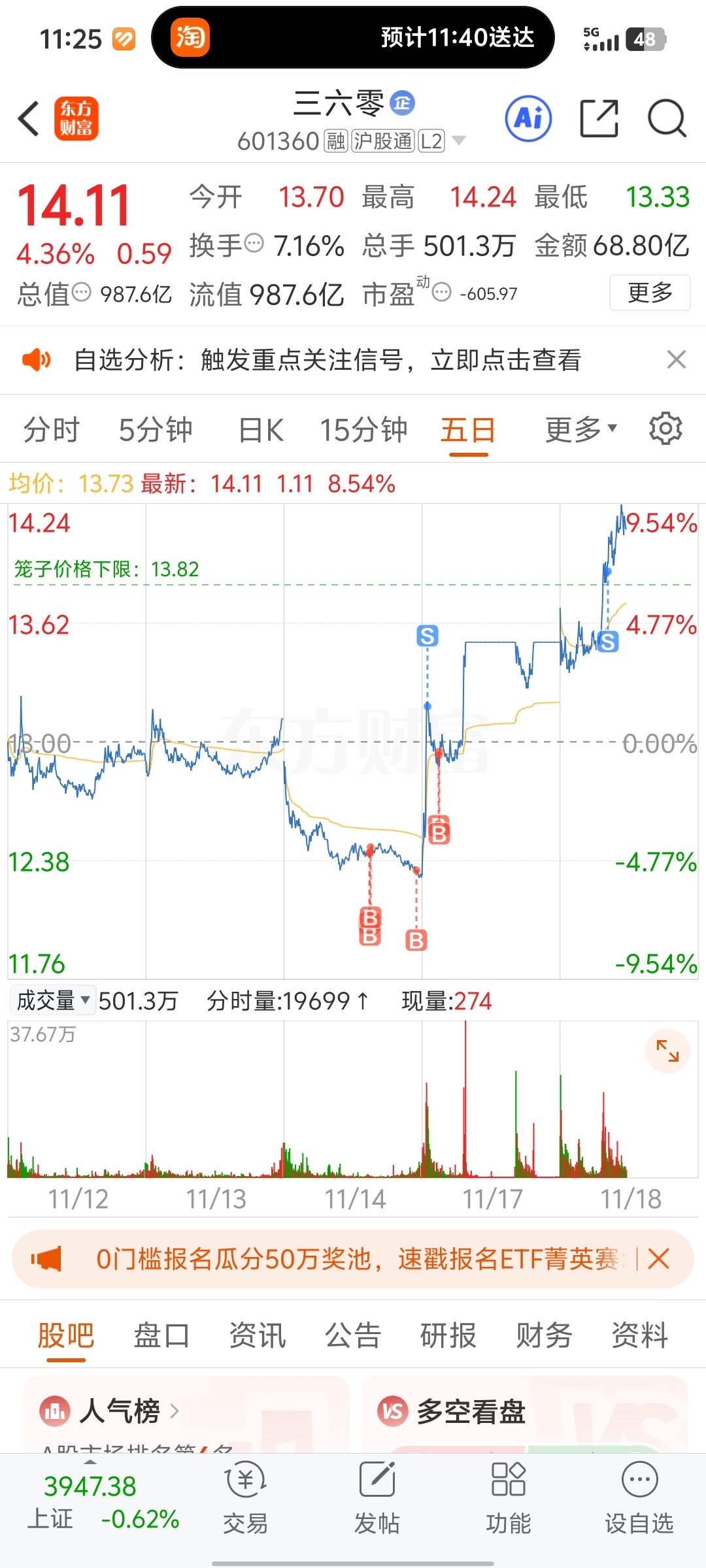 $三六零(SH601360)$ 卖飞了,再见了!感谢360。