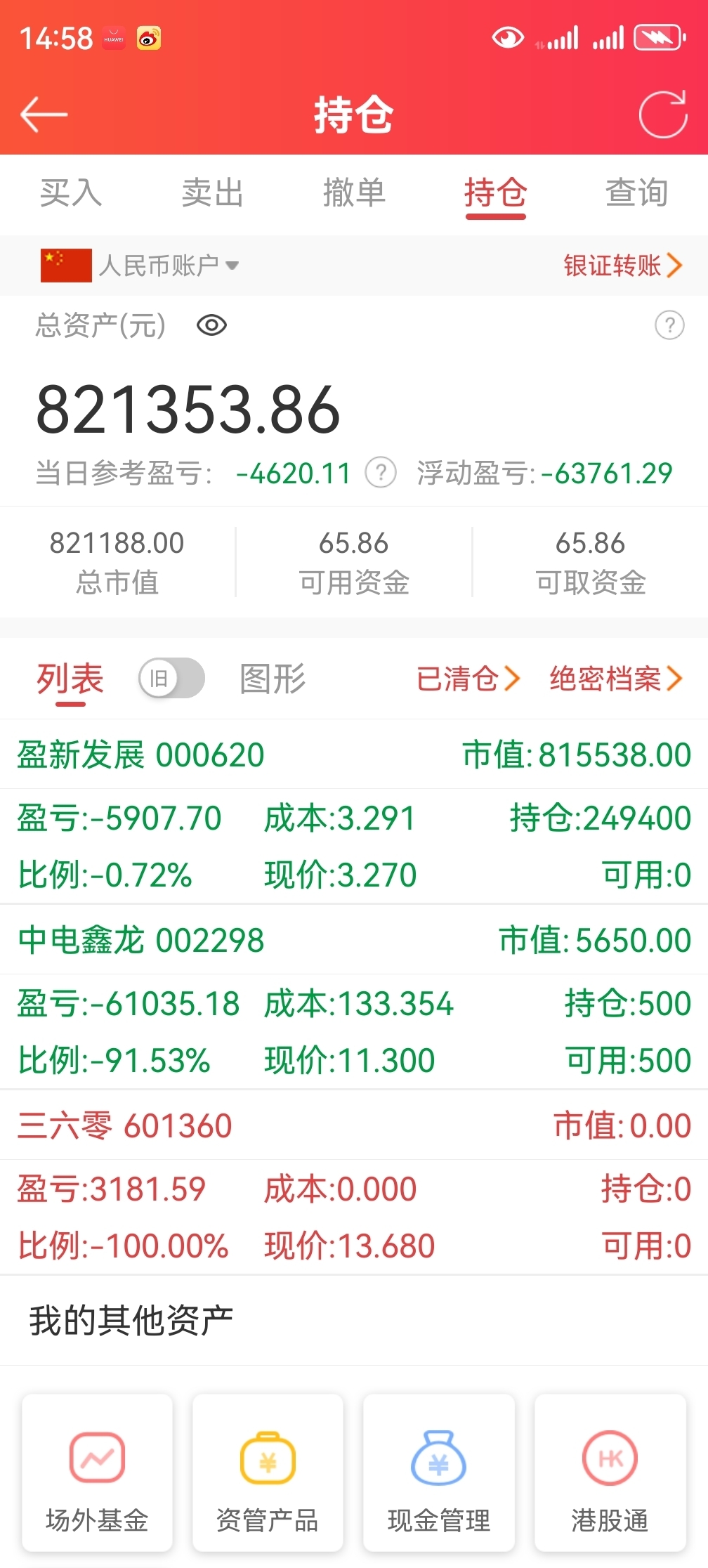 $三六零(SH601360)$ 目标50w一年300w,现持有盈新发展。第24天