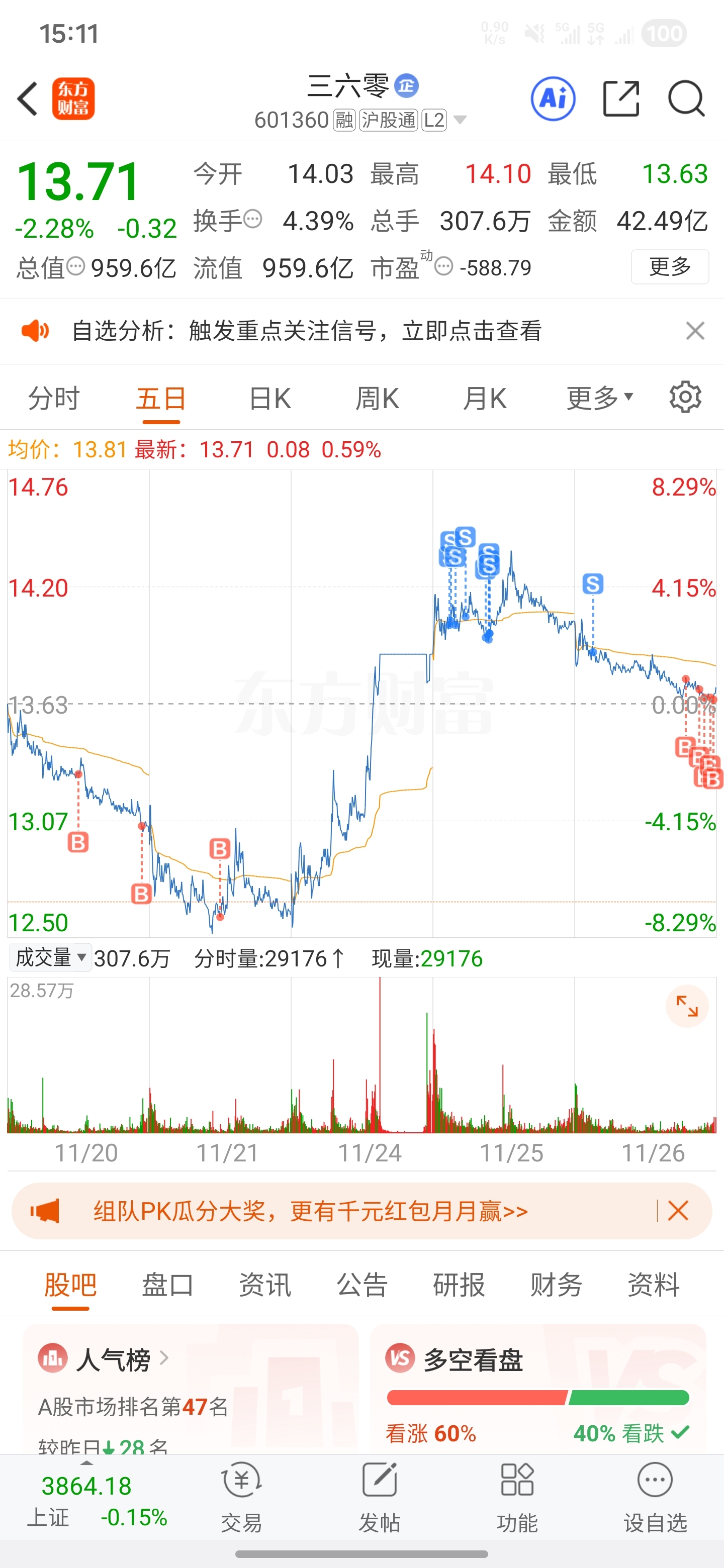 $三六零(SH601360)$ 别人贪婪我恐惧,别人恐惧我贪婪