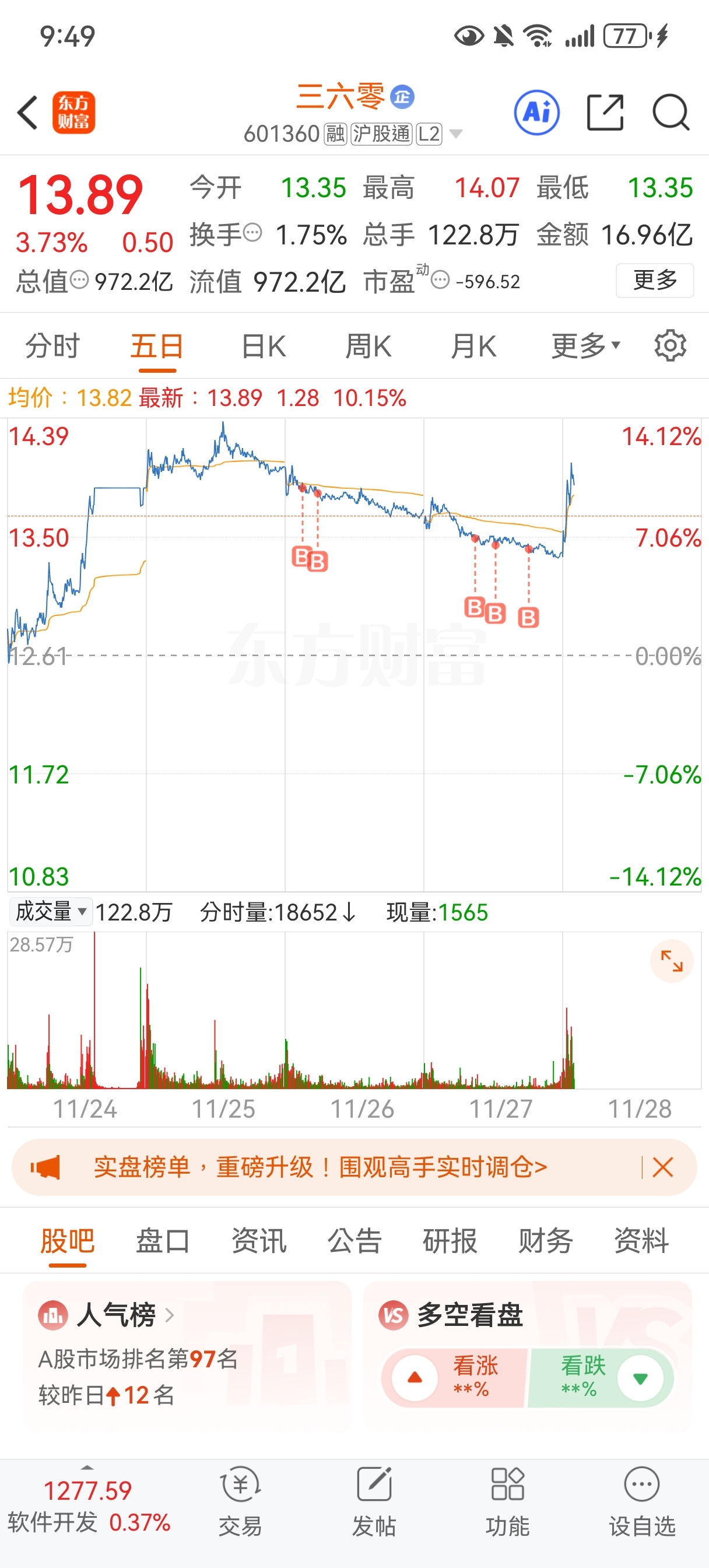 $三六零(SH601360)$ 上午1439不过就走