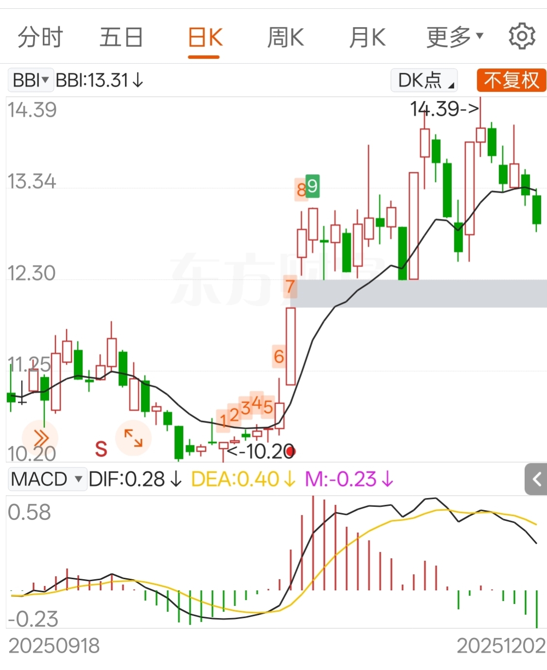 $三六零(SH601360)$ 三六零不亏是玩技术的公司,连股票K线走势都精心设计,专杀技术派。macd死叉向下,很难看,技术派见这个都是要跑的。今天股价跌到BBI线之下,技术派一般也是要跑的。但看看前两个股价收在BBI的情况(11月14、11月21),第二天都是涨停板!再一再二不再三?让我先试试。