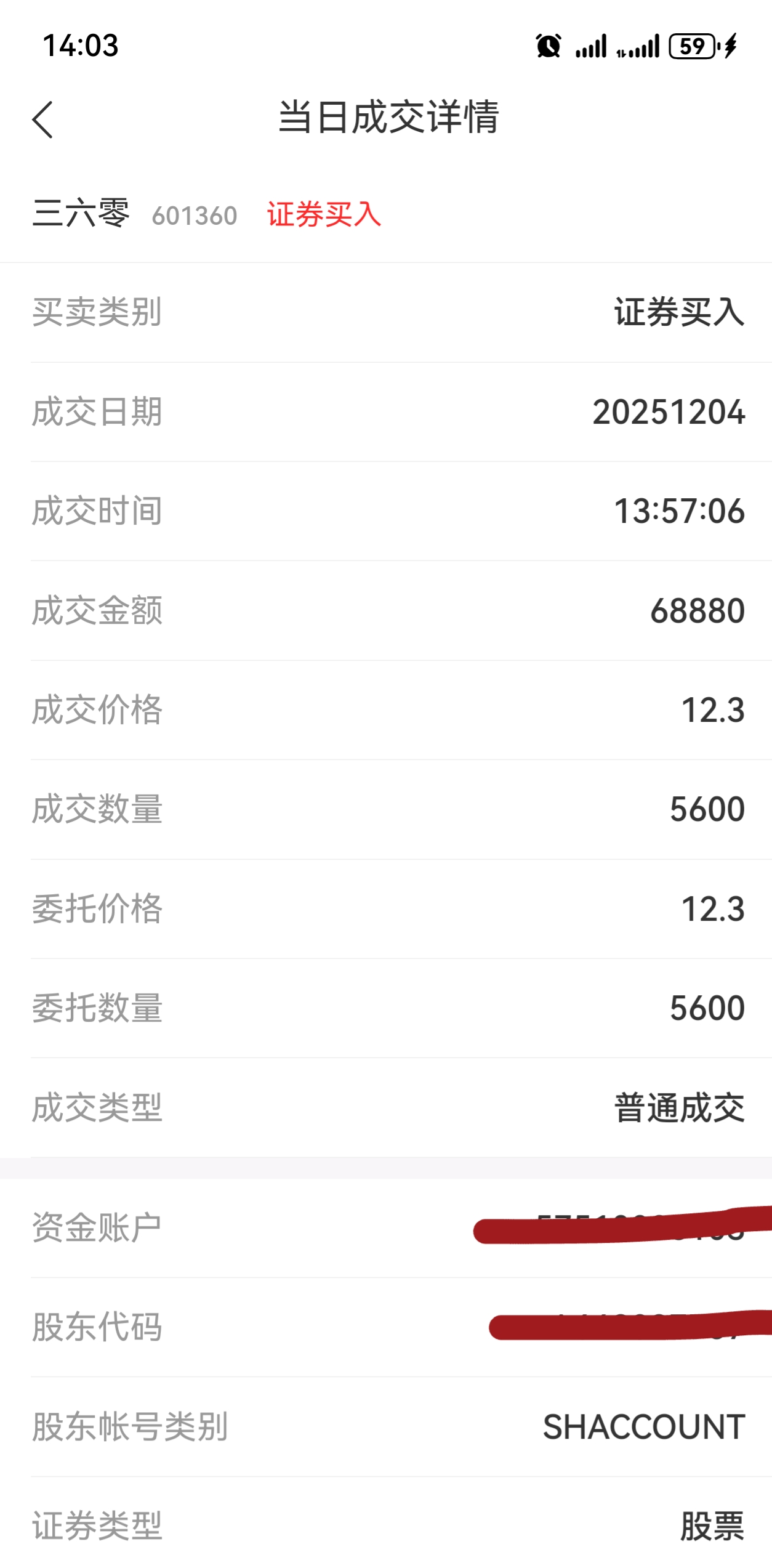 $三六零(SH601360)$ 买了7万块,逢买必跌。股友们又来害你们了