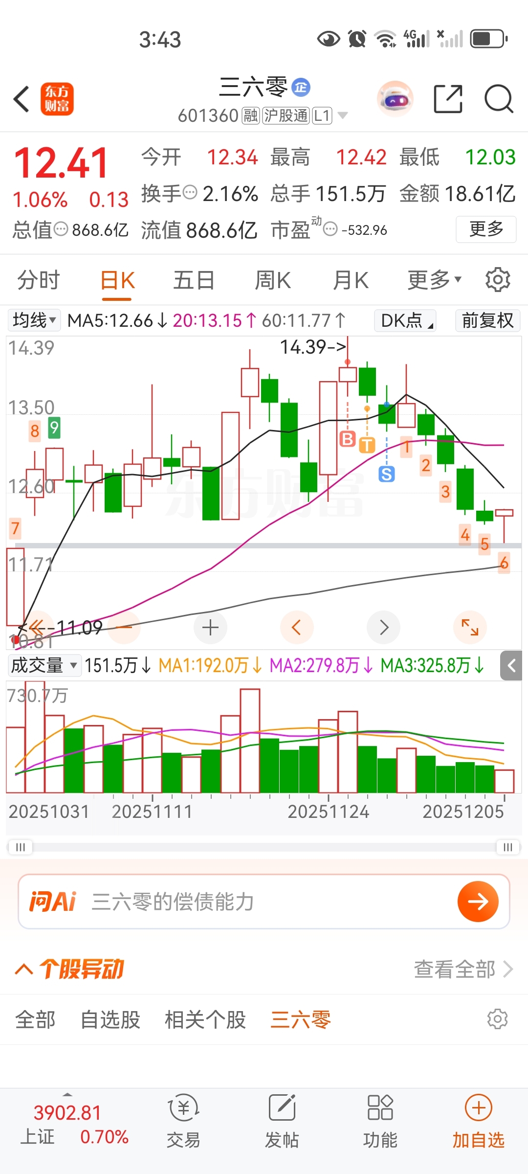$三六零(SH601360)$ 哎,执行纪律是多么重要。