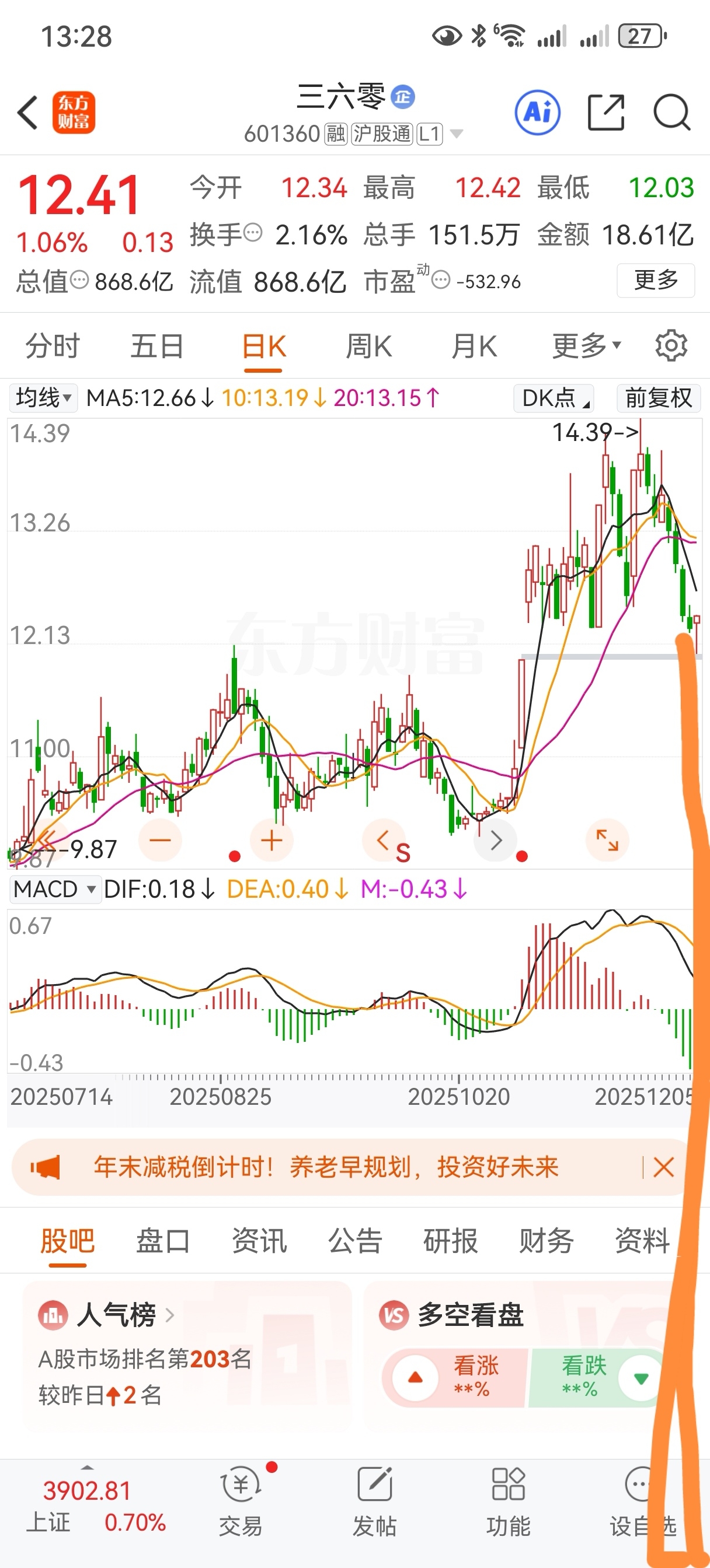 $三六零(SH601360)$ 下周走势,下周一怎么操作,没必要我再次提醒了!