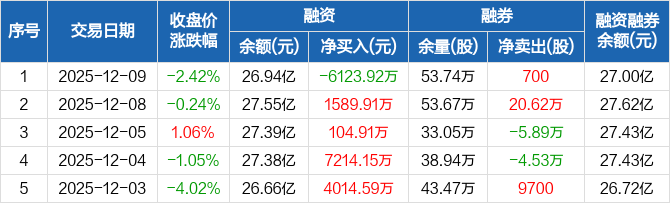 三六零:融资净偿还6123.92万元,融资余额26.94亿元(12-09)