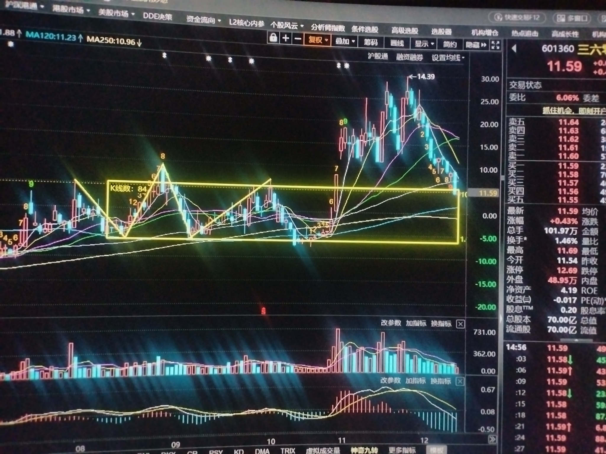 $三六零(SH601360)$ 我感觉在这个位置很盘几日前天跌破中枢,昨天收盘只是上穿中枢整体实柱还在里面,周一能收前两日大阴线底分型停顿,应该是4买阶段出现,强级别出现的话主升浪会出现,跌破中枢那就还跌11块跌破还待10.34,在跌破就等878强支撑位置,我感觉主力不可能在跌建仓大半年过去了应该这个月会大级别突破15元位置