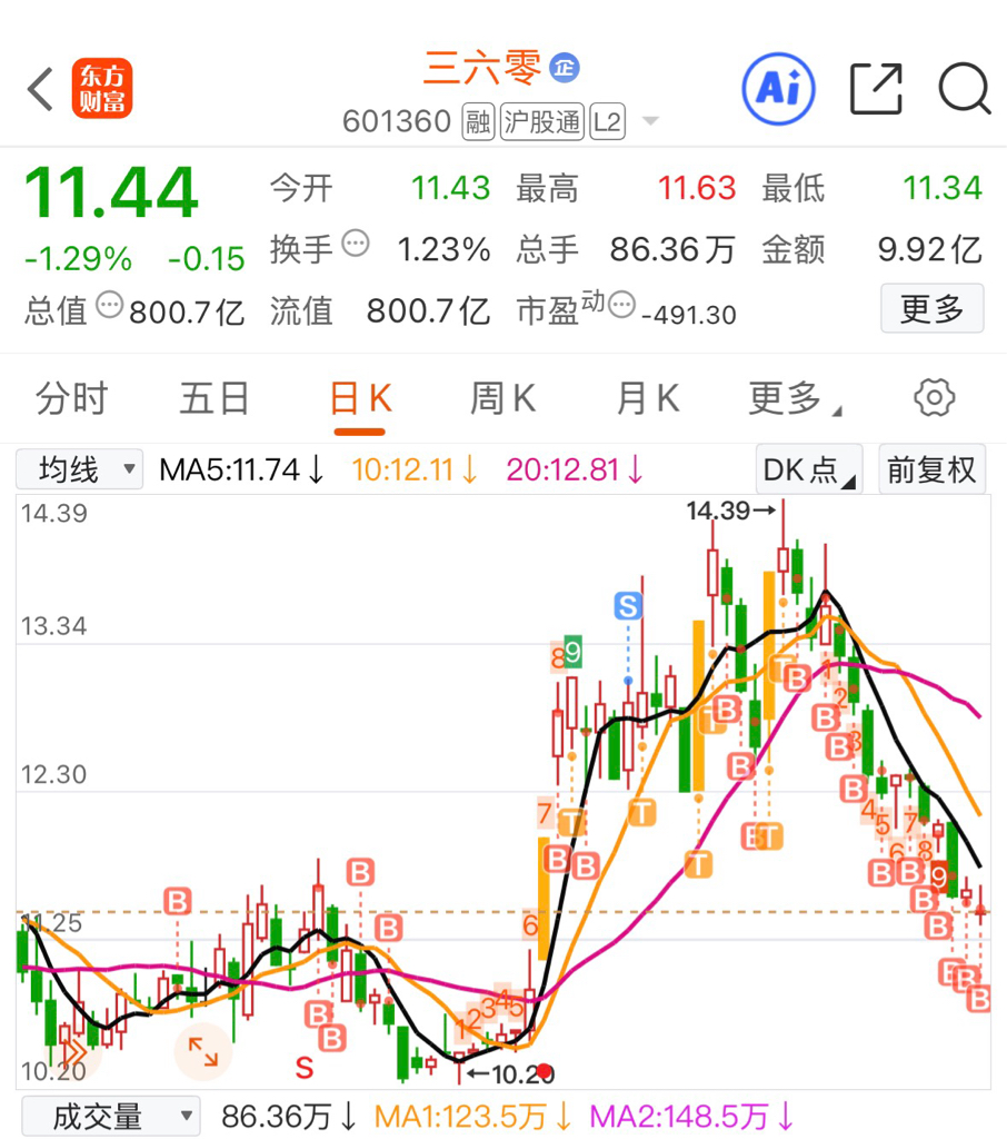 $三六零(SH601360)$ 哈哈哈哈,太喜感了,第一次买一个股票这样买,好欢乐~