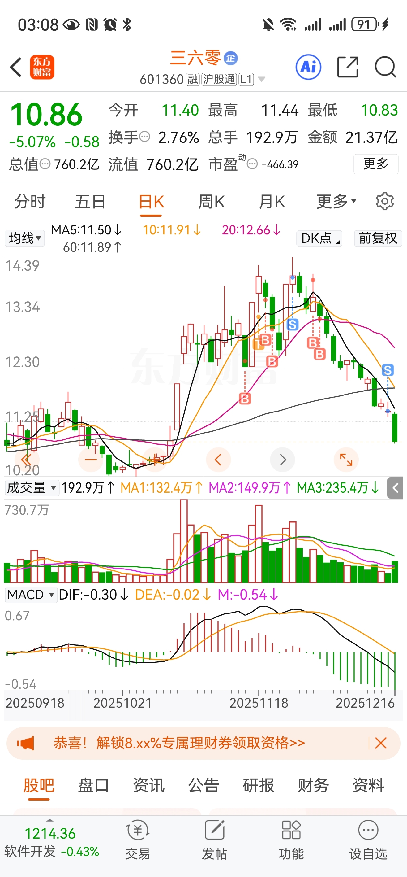$三六零(SH601360)$ 本来好好的开头,人生第一次A杀,11月28号不追涨接回来,后面的故事也不会有
