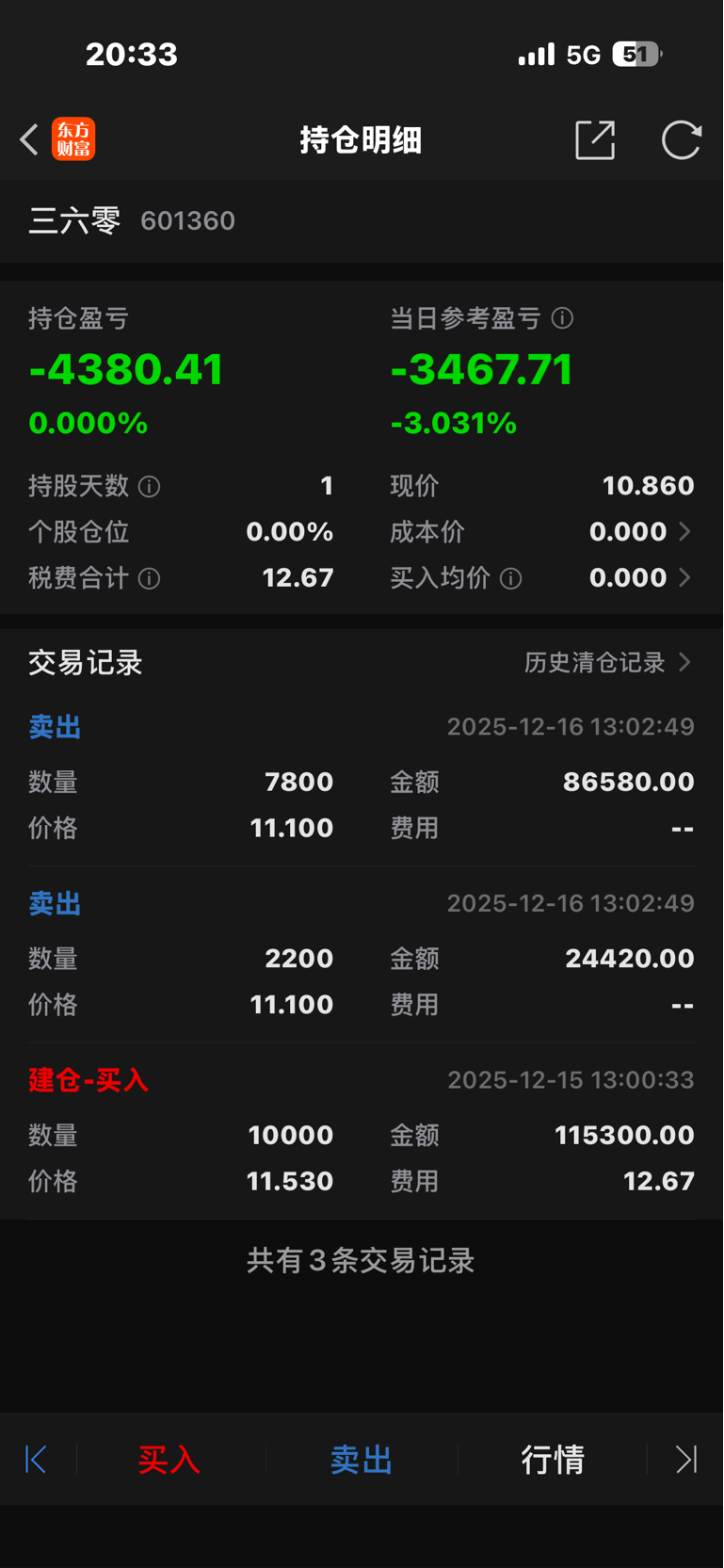 $三六零(SH601360)$ 拉了一坨大的,苍蝇不叮无缝的蛋,幸亏割肉割得果断