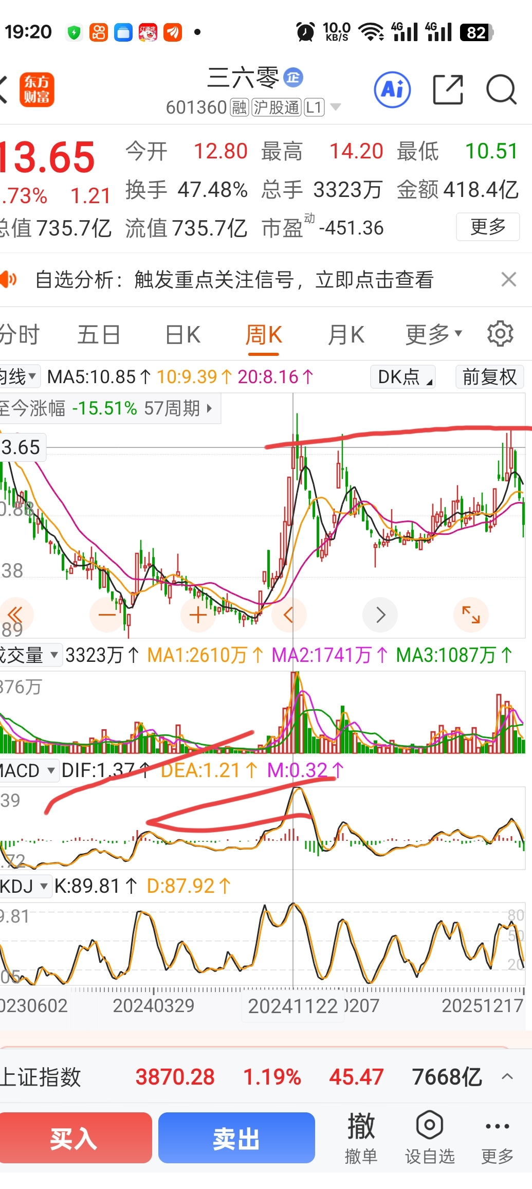 $三六零(SH601360)$