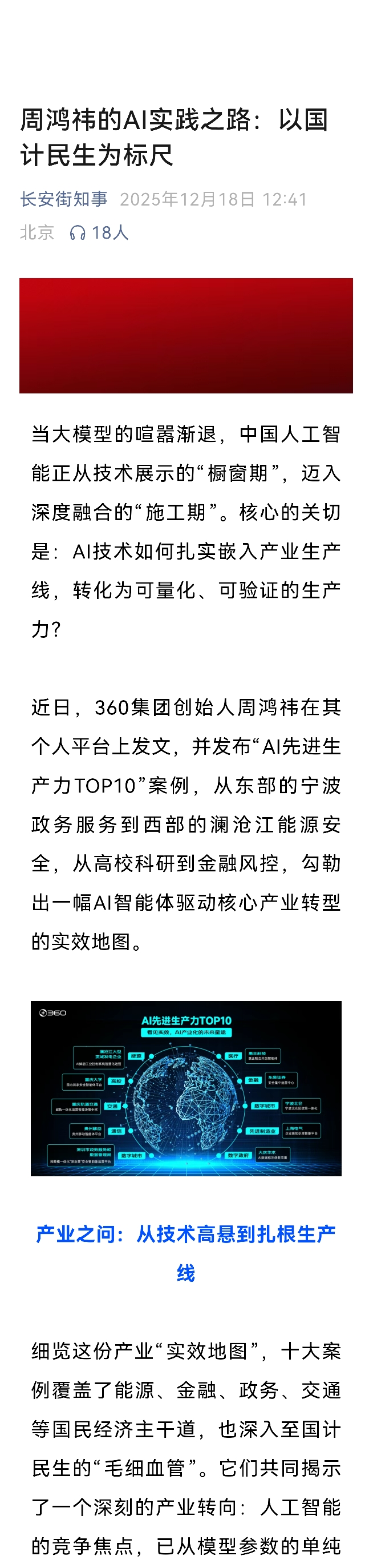360的AI智能体必定会大爆发。周鸿祎的AI实践之路:以国计民生为标尺。这是12