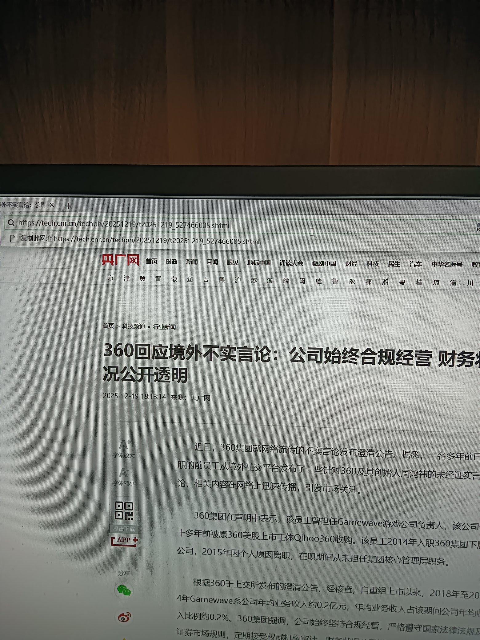 $三六零(SH601360)$ 针对好多人对这篇文章的质疑,我拍一张带有网址信息的图片,自己去输入看看吧!
