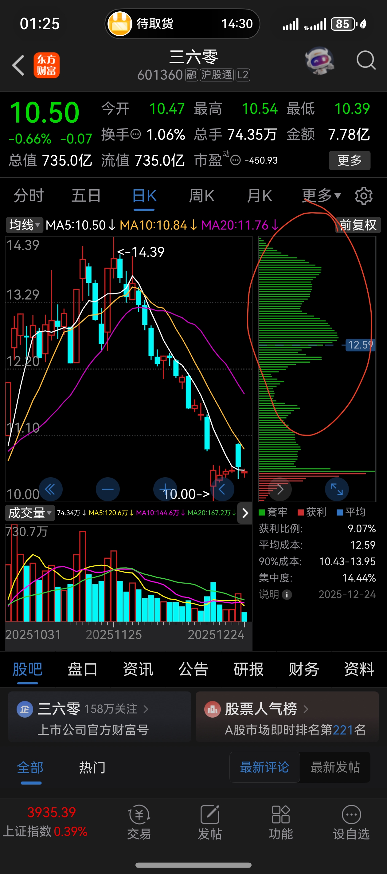 $三六零(SH601360)$ 所有数据中,唯有筹码不会骗人,主力会一直在10.50左右吸筹,上面的那么补仓,要么割肉。如果补仓,主力会接着砸,直到散户受不了割肉为止。