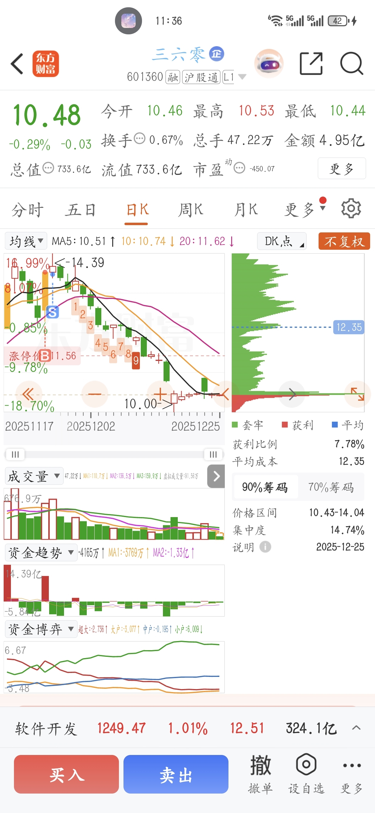 $三六零(SH601360)$ 回来看了一下这个票艾玛还好我跑得快!