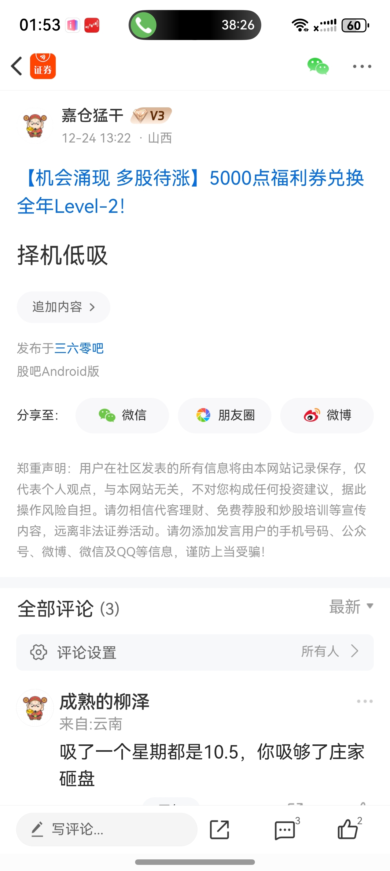 温馨提示: 1.根据《证券法》规定,禁止编造、传播虚假信息或者误导性信息,扰乱证券市场;2.用户在本社区发表的所有资料、言论等仅代表个人观点,与本网站立场无关,不对您构成任何投资建议。用户应基于自己的独立判断,自行决定证券投资并承担相应风险。《东方财富社区管理规定》