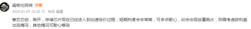 香农芯创,这两天存储芯片涨价70%的消息可以说直接点燃市场情绪,周二晚间闪迪股价更是大涨24%。后续随着需求持续提升,存储芯片继续涨价或还有很大可能。如此存储芯片中长期继续看涨问题不大。