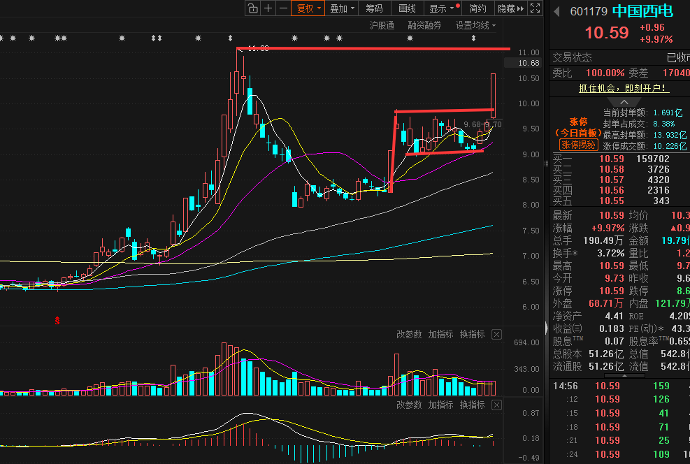 中恒电气,再次印证,一定要找到主力的节奏,吸筹和洗盘,只有看准才能做到稳定且拿的住。前两天一直强调24号涨停后股价连续缩量在涨停阳线实体内震荡,这很大概率是在洗盘,要知道拿筹码最强的方式就是涨停。周二强调股价给到中阳反包,则很大概率是洗盘结束信号,后续在均线多头跟上的情况下,继续走强甚至走第三浪主升的概率会非常大。昨日再次放量冲高,一度有冲击涨停迹象,可惜下午市场整体偏弱,最终收出小上影线。