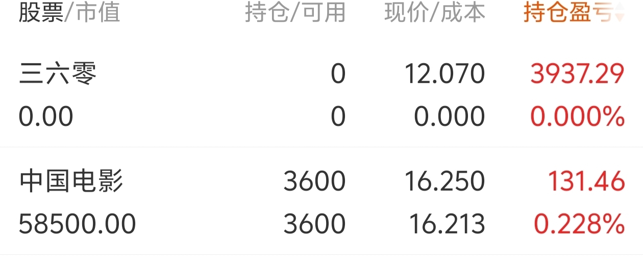 成功清仓,先观望一下。接下来看下午中国电影的走势了