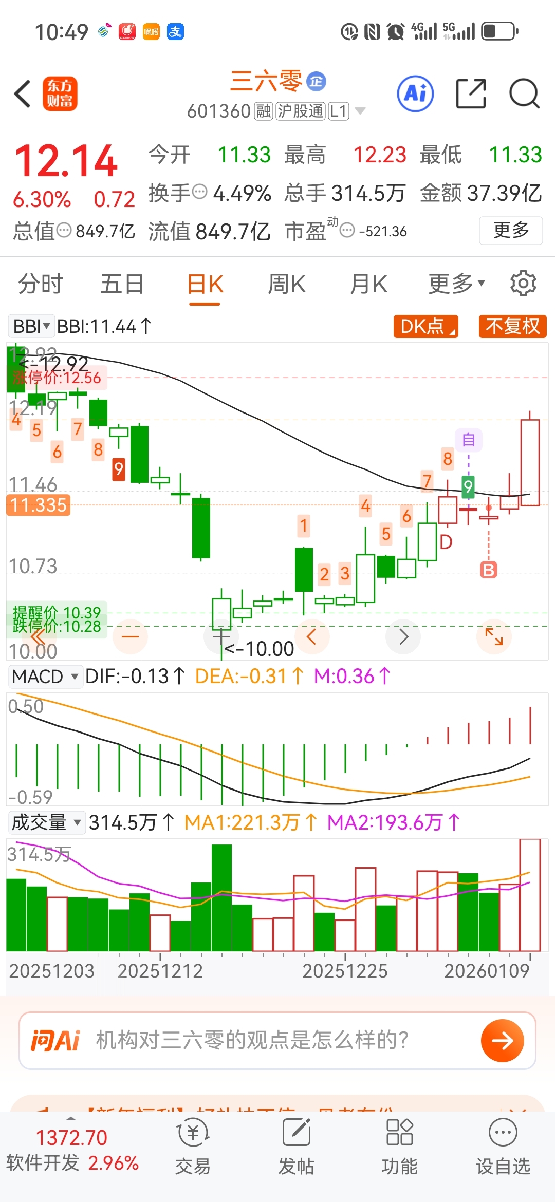 $三六零(SH601360)$ 这么多唱多,真会涨吗?看到多少?
