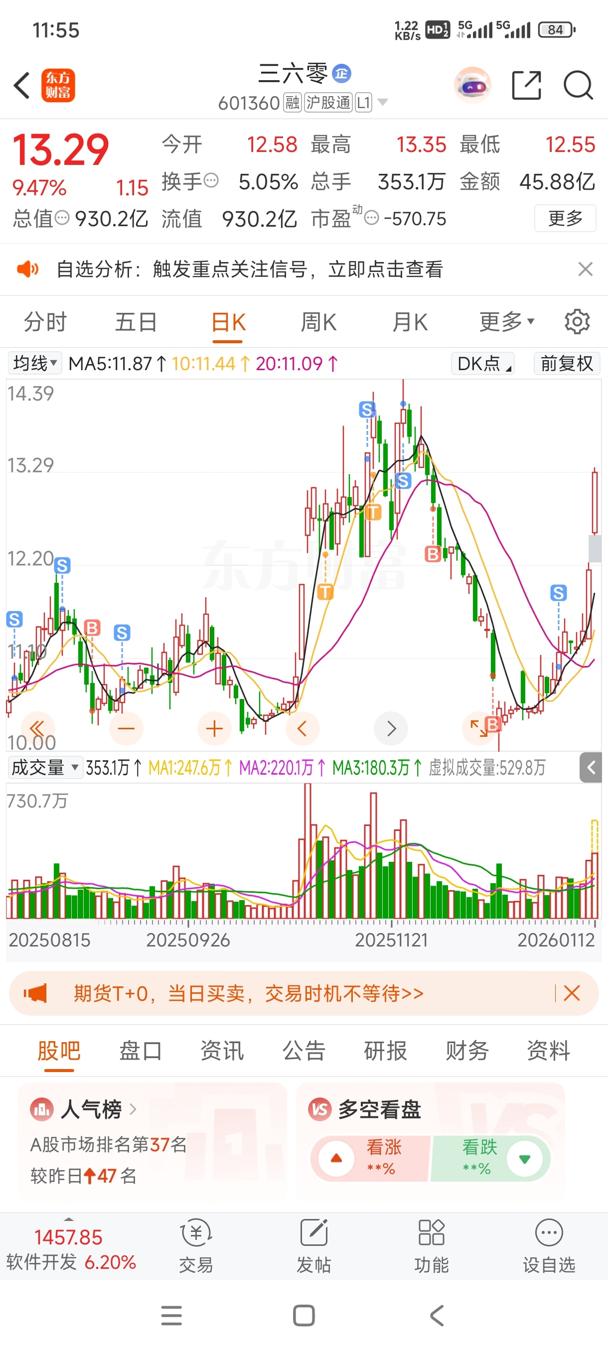 $三六零(SH601360)$ 拍大腿,他奶奶的