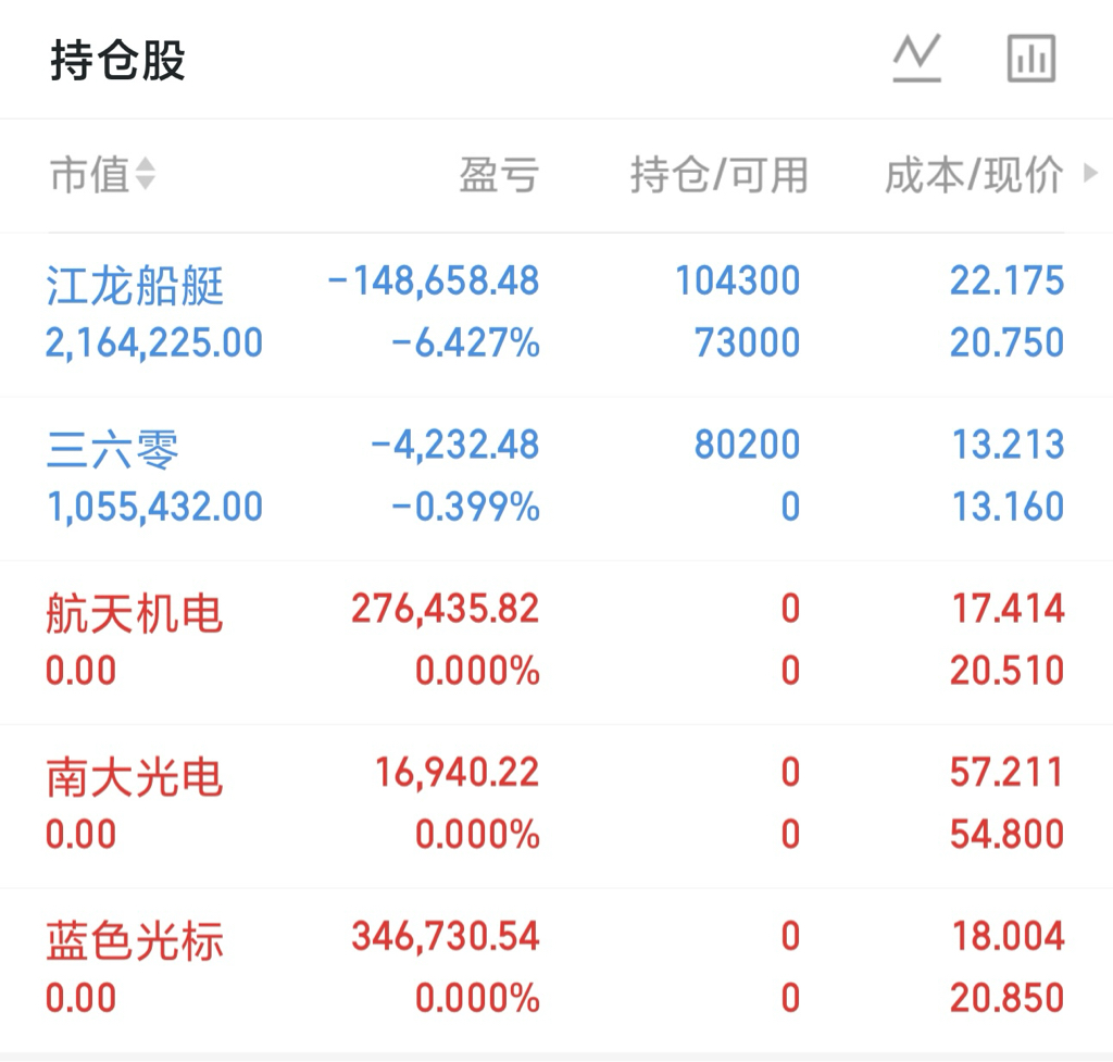 $江龙船艇(SZ300589)$ 昨晚利空消息也是有所下滑,明天看修复迹象$蓝色光标(SZ300058)$ 落袋为安规避风险,航天机电给了机会就跑也是开板出局落袋为安,南大光电喝口汤