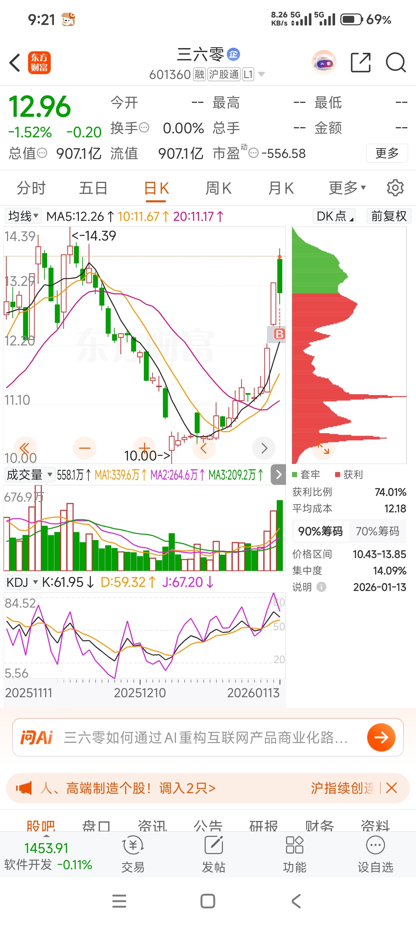 $三六零(SH601360)$ 挂山顶上了
