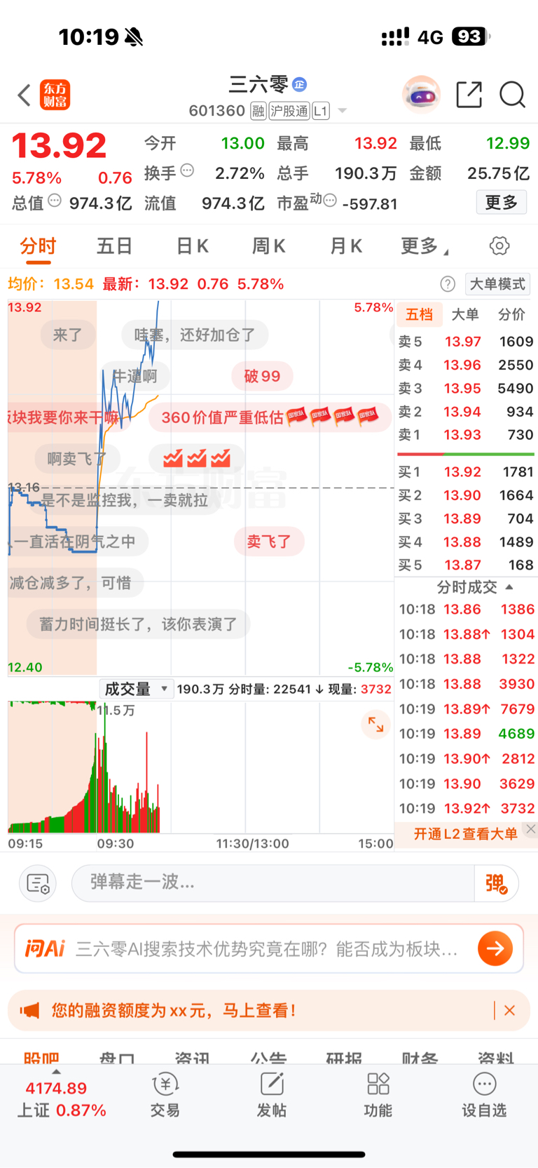 $三六零(SH601360)$ 恭喜大家,昨天有人说什么来着? 有望冲击涨停,加油