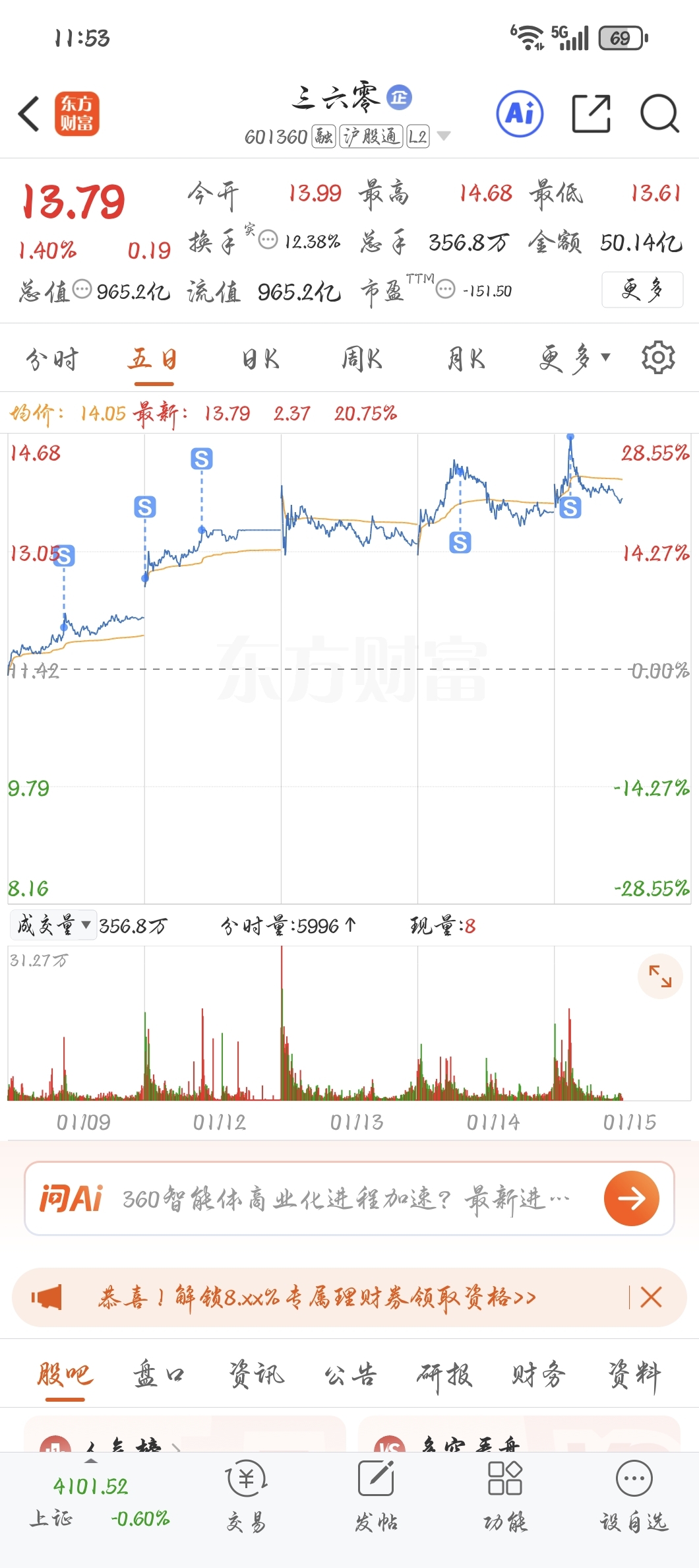 $三六零(SH601360)$ 别搞我啊 这几天搞得和我砸的似的