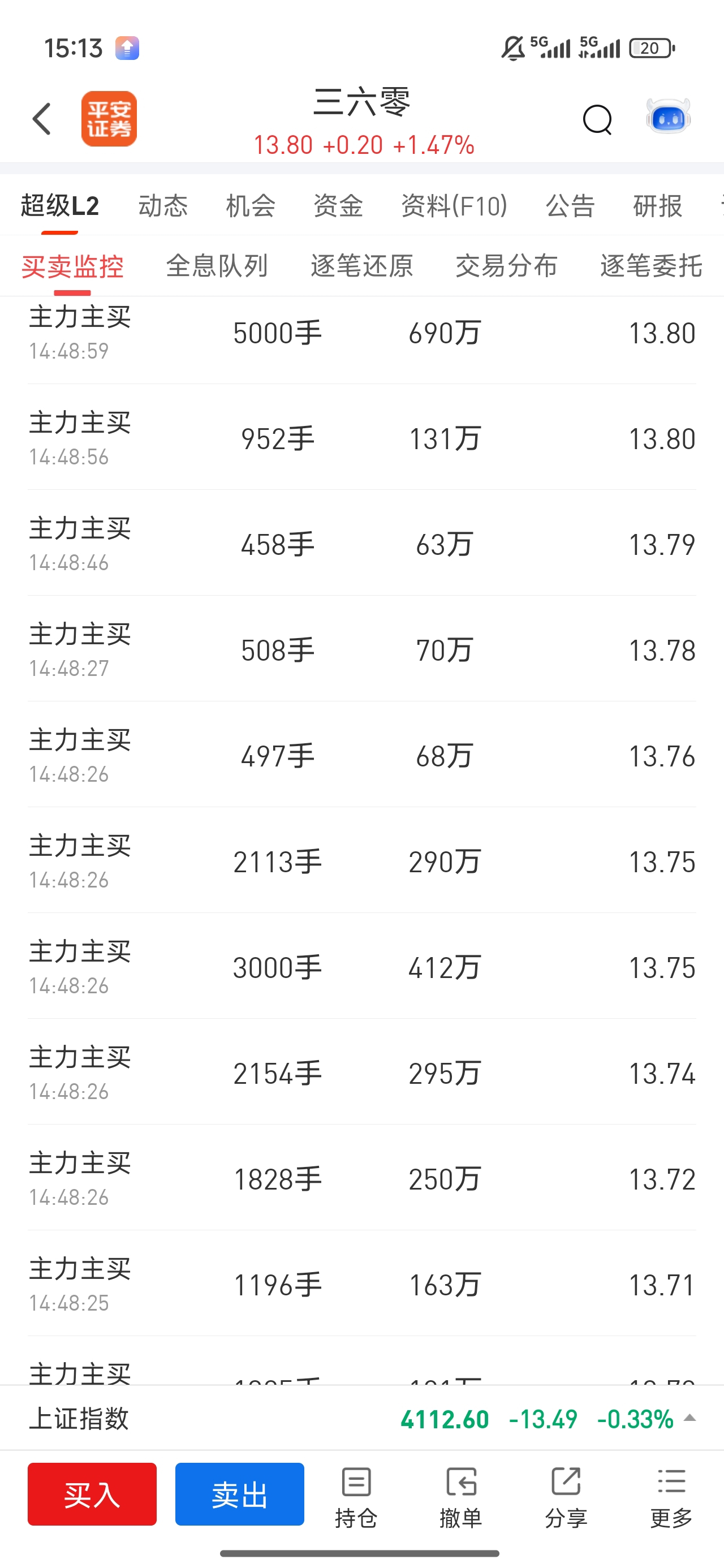 想上去了又跌下来,尾盘又买这么多,庄家是个傻的!天天让人做T