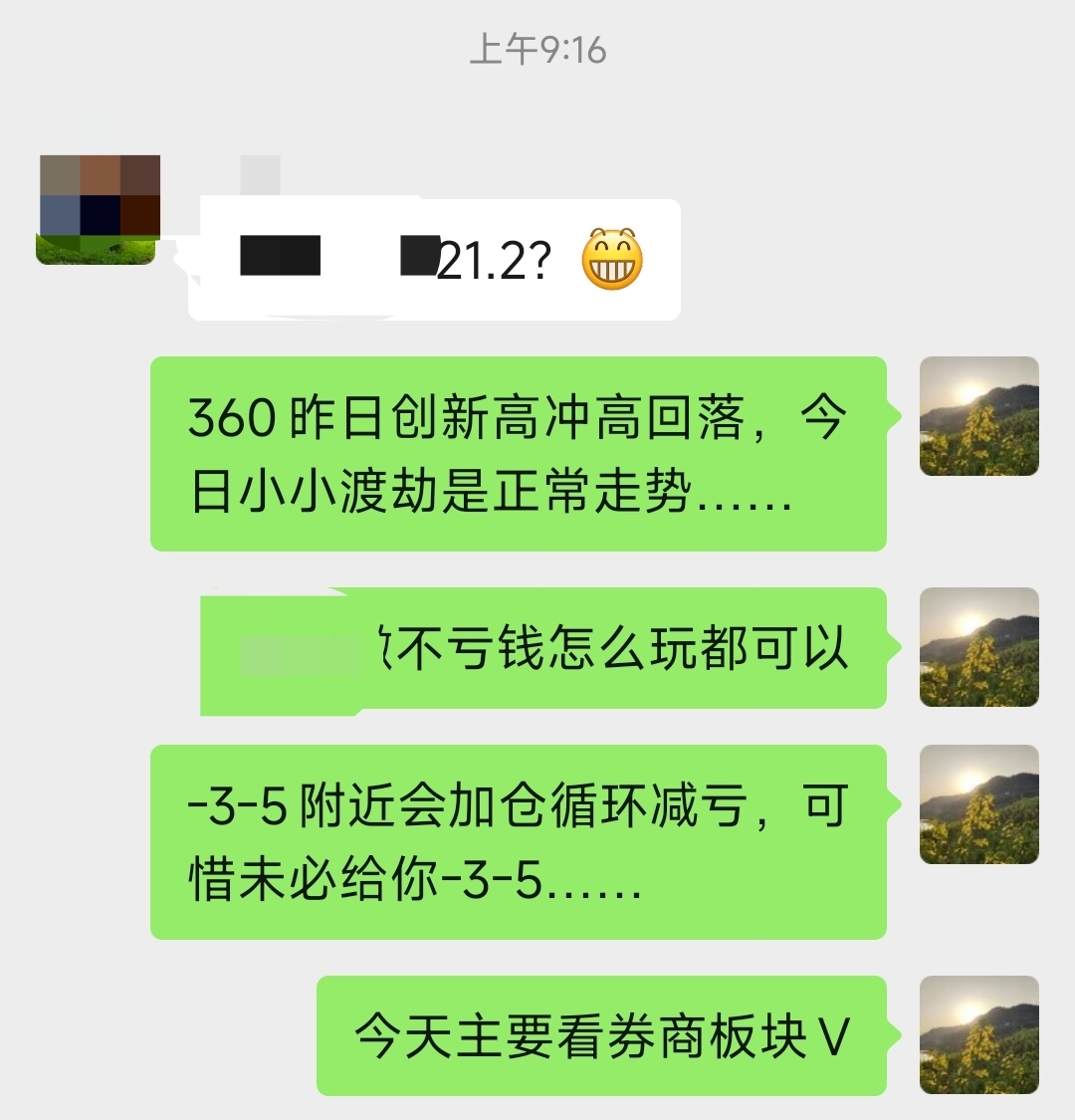 花里胡哨还T早了!今天这个低开太舒服了!哈哈哈,集合竞价360就说了3-5区间加仓一次,大家做没做……