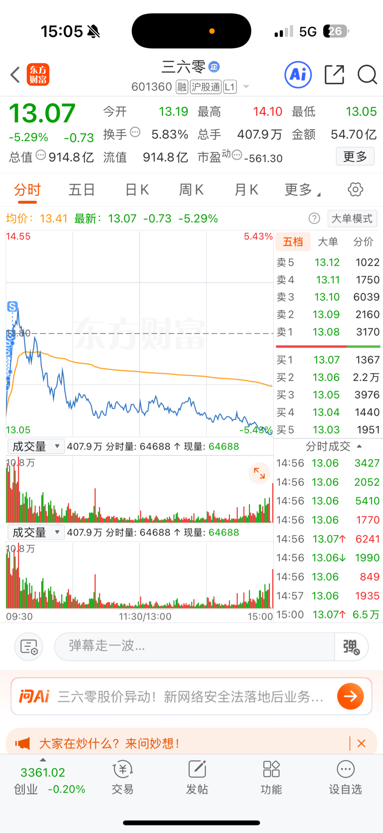 $三六零(SH601360)$ 永远不要碰这种公司,先有周鸿祎技术离婚(虽无减持),后有什么红故意通过小作文打压股价。这种对股东,对自己声誉不负责任的公司,永远不要碰。特别是公司老板,一肚子坏水