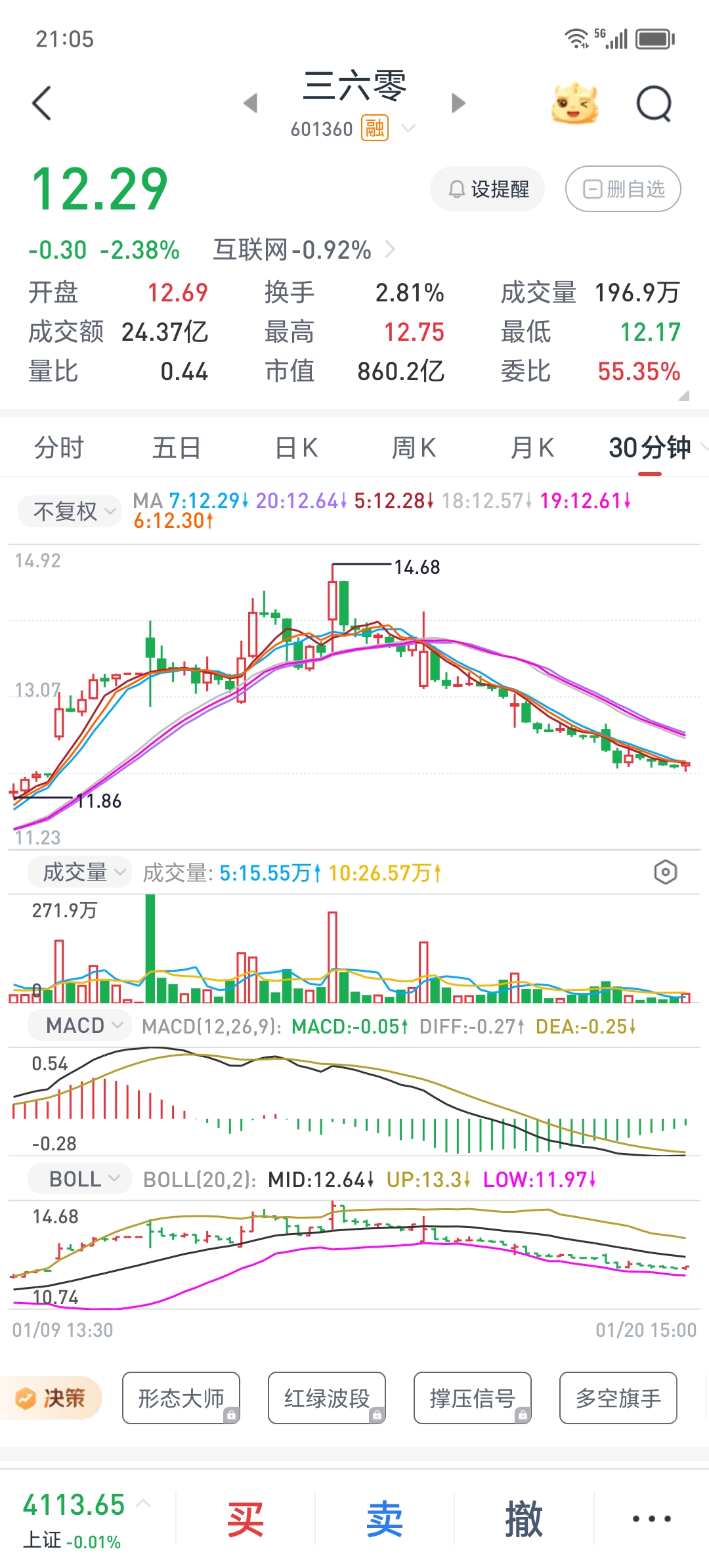 大意了,没有严格遵守6了分时K线,均价金叉死叉买卖股票。