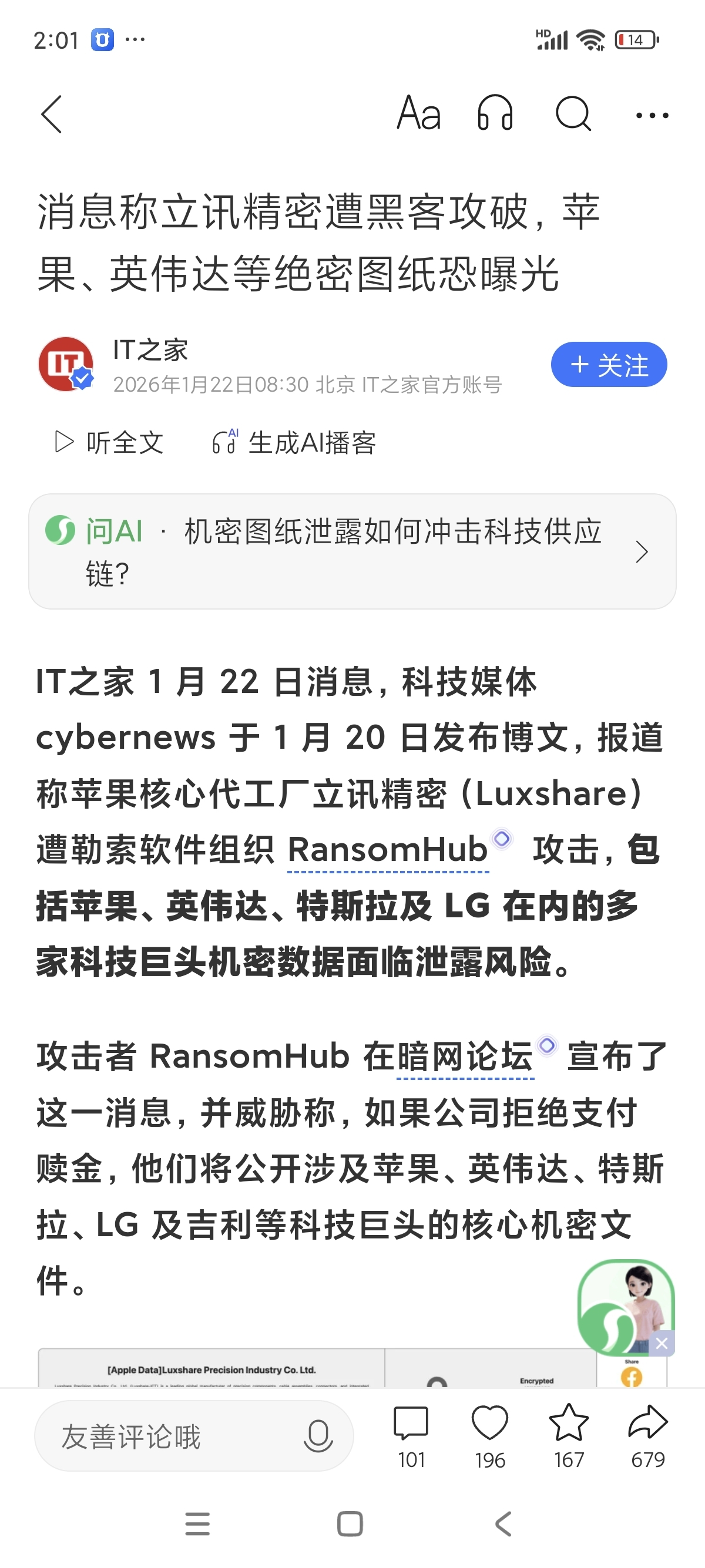$三六零(SH601360)$ 论网络的安全重要性,前有快手,后立讯,360还不赶紧起来干活
