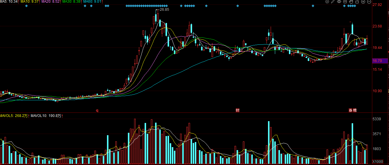 三安光电600703:公司是半导体概念股,周二板块分化还是比较严重的,板块中的龙头康强电子,金海通,电科芯片强势涨停,同时蓝箭电子至纯科技调整幅度居前,周三结构依然还是分化的一天。三安光电近期走的还是比较稳的,股性也是比较好,股价沿着五日线震荡上行,现在还是继续在上升通道之中,五日线有较好的支撑,只要能够守住后面市场中有接力还是有望继续冲高的。从月线来看,现在位置也不算太高,在过年之前有接力站上20还是可以期待的。