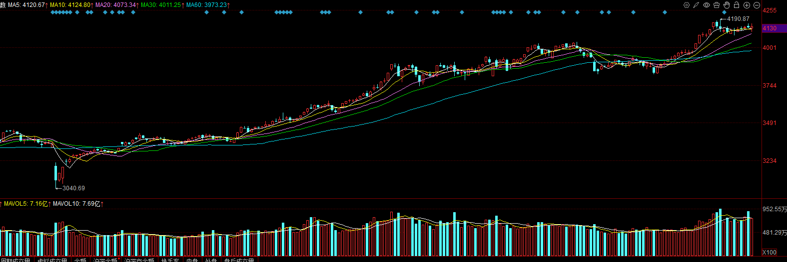 昨天沪指探低回升渡过了最难的时间节点,尾盘上证50、沪深300又出现了明显的跳水,4190点就是一个坎,短期仍以震荡思路对待。今天是ETF期权交割日,大概率会宽幅震荡收小阴小阳线,小概率会收中阴或中阳线。周三若快速调整更像是倒车接人的走势,若震荡上涨则要管住自己的手,追高容易吃套,机会永远是等出来的。