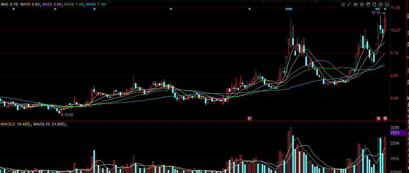 胜利股份000407:前期受益于天然气业务旺季需求与资产整合预期,在十一月份走出加速行情之后,股价从最高的6.7附近调整下来,现在有企稳的迹象,下方多条均线都是拐头向上的,最近三个交易日都是在小阴小阳的震荡,更像是洗盘的动作,周三回踩五日线之后市场中如果能有较好的接力还是有望反包的。