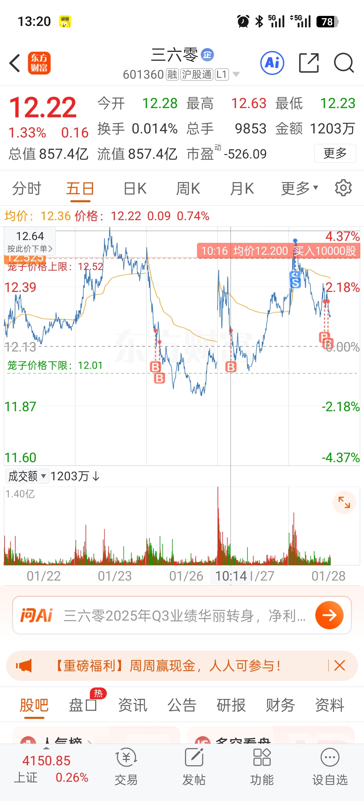 $三六零(SH601360)$ 破12我再加