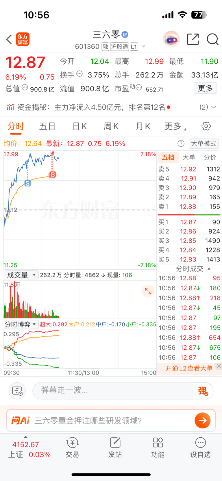 $三六零(SH601360)$ 玩股票只能bs,不能sb啊
