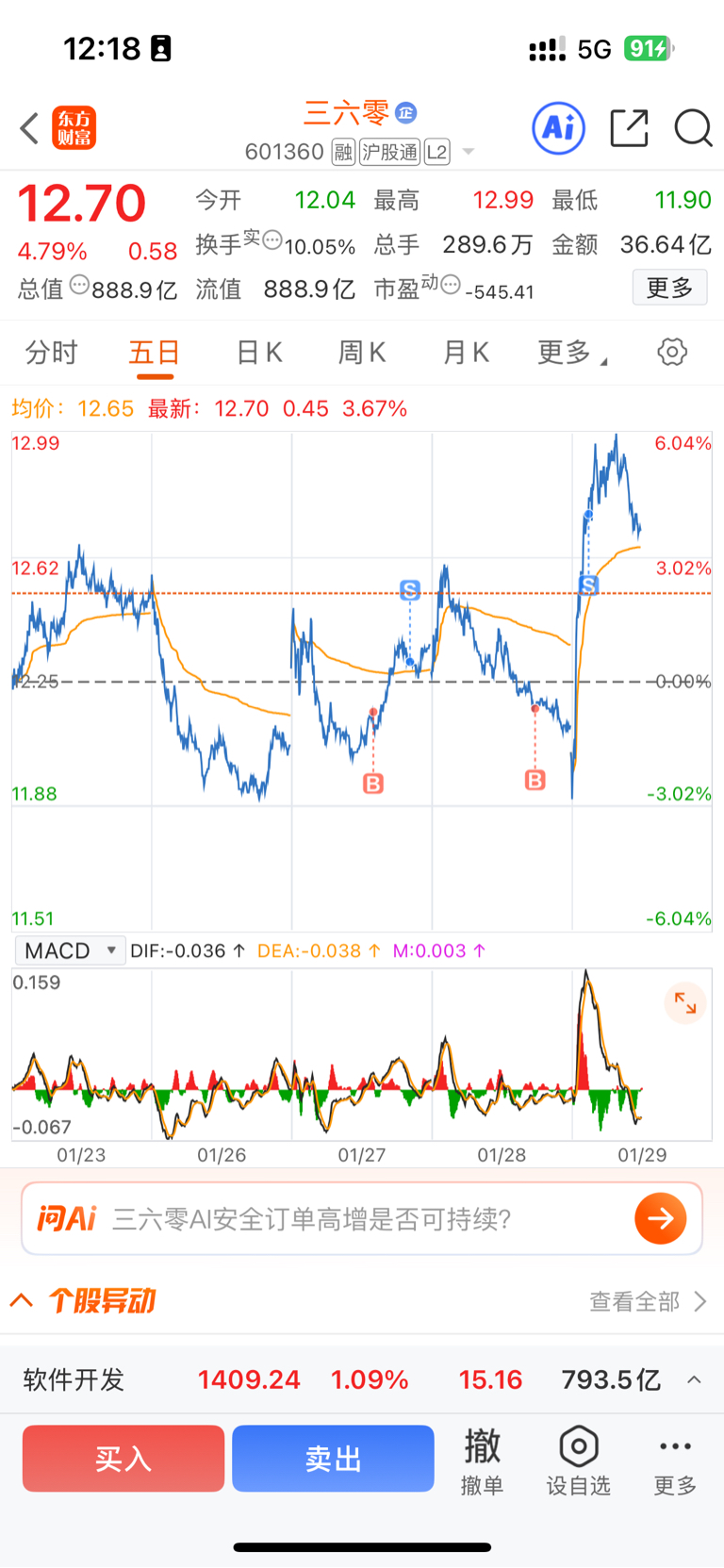 $三六零(SH601360)$ t啦低再接