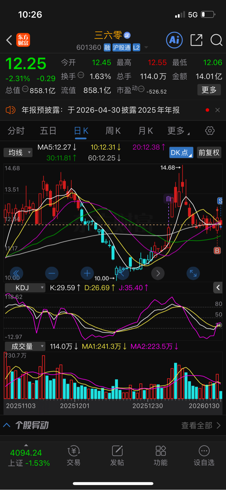 $三六零(SH601360)$ 割肉出局