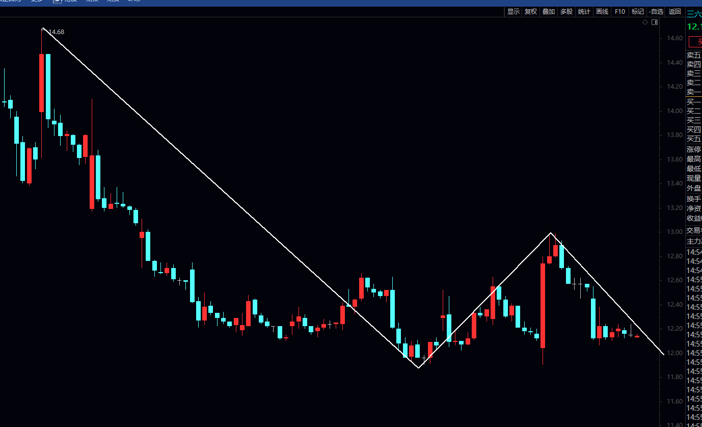 来张图,30分钟的,能看到这里走了3段30分钟级别走势,第三段在构造中并未完成,学过缠论知道这3段构成日线中枢,当这3段完成后,才会有一波再次上冲14.6高点的机会。这里还是需要再震荡下