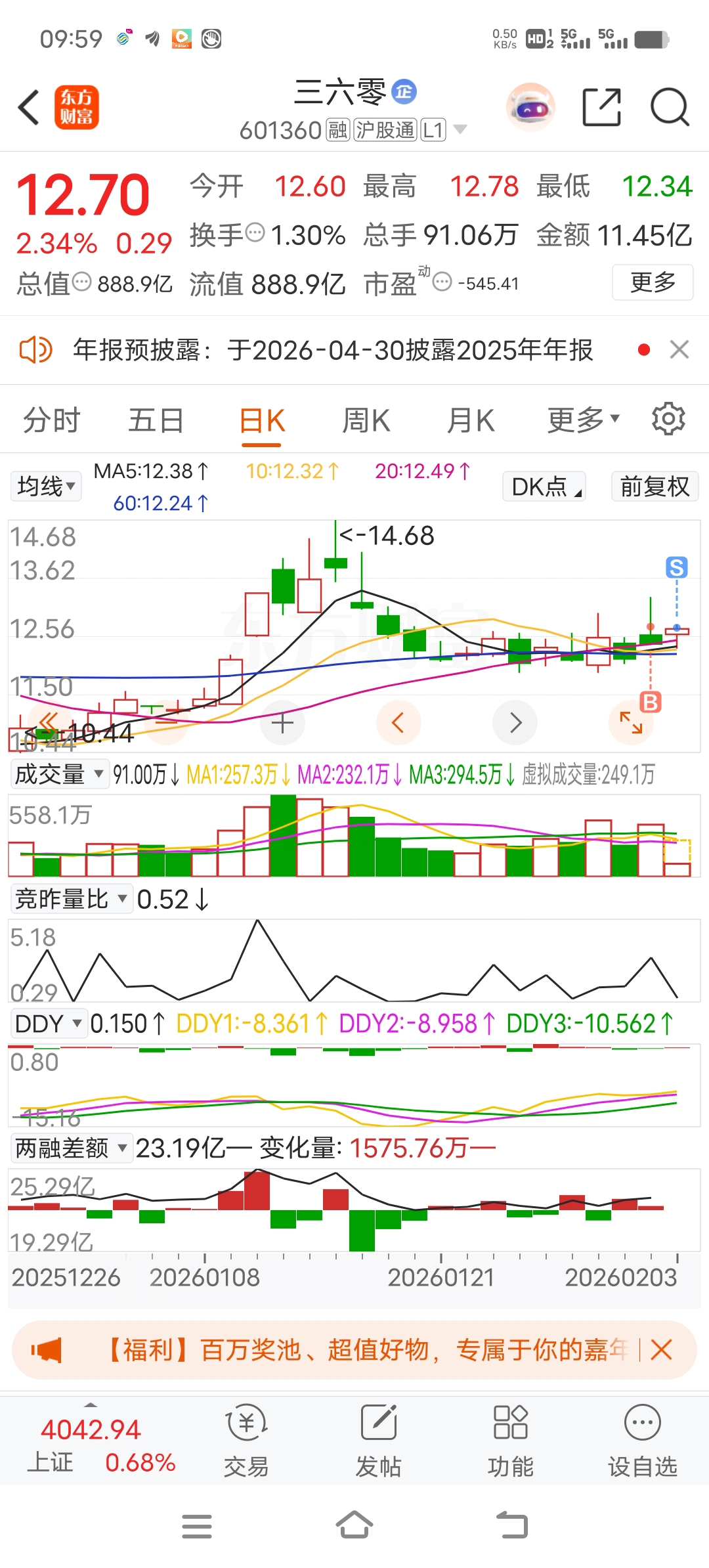 $三六零(SH601360)$ 昨天日线小时线共振买入,买入的时候上涨了5%,就冲着涨停的预期去的,还好今天小亏止损了。以后要记住教训:交易系统里加入涨幅2%以内买入,3%以上的涨幅坚决不买。
