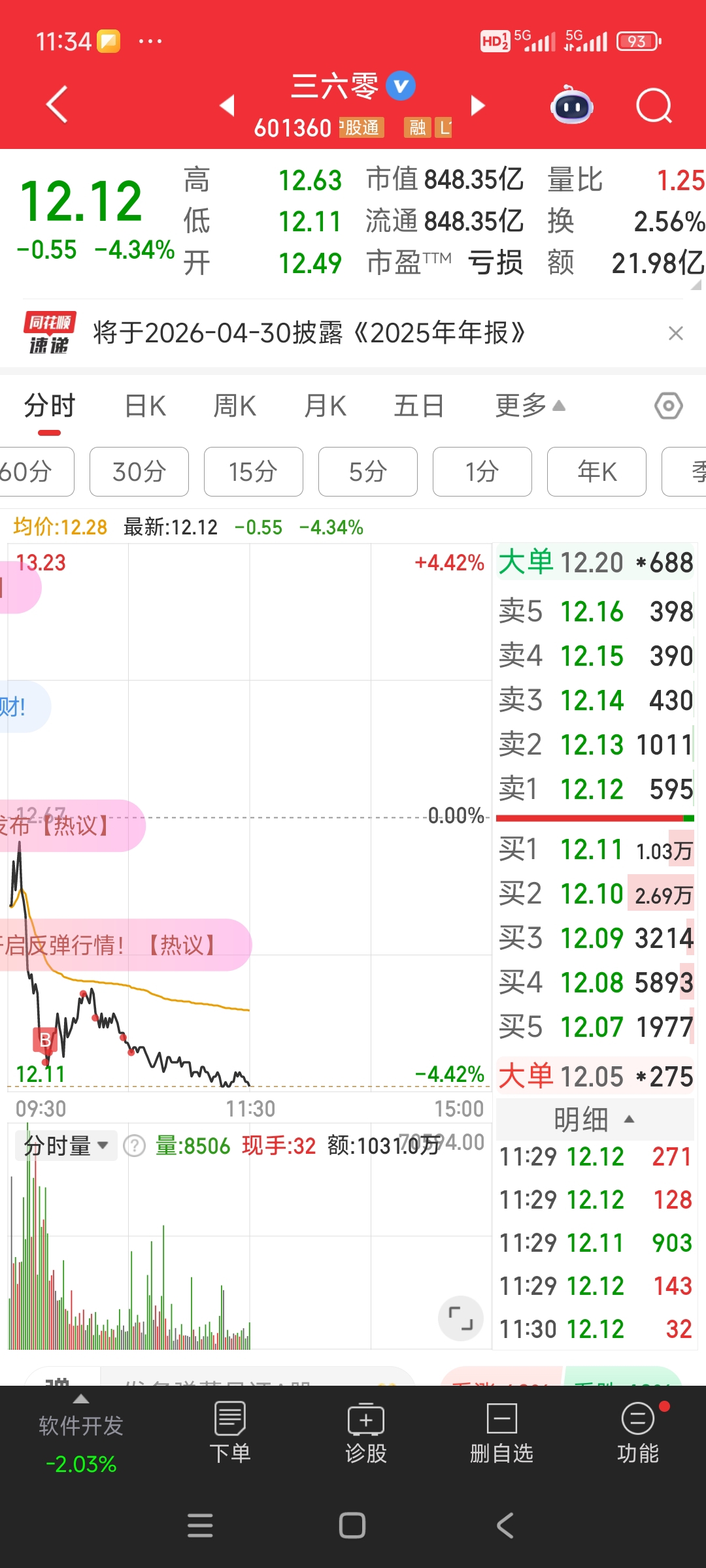 $三六零(SH601360)$ 买得太早了,12.25买了10000股,居然套住了。
