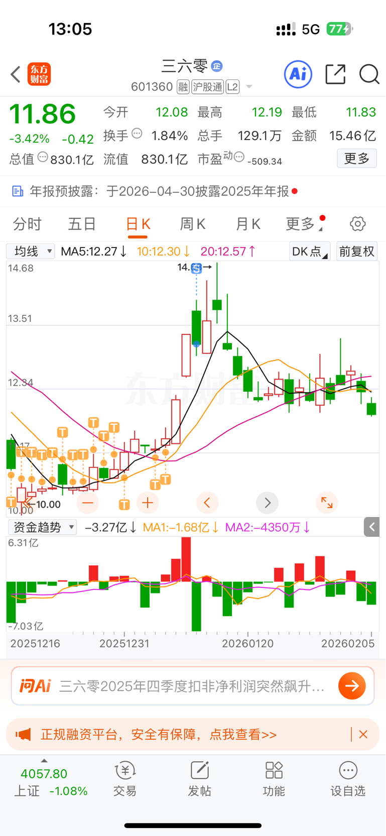 $三六零(SH601360)$ 多跌点,跌到位我在回来。