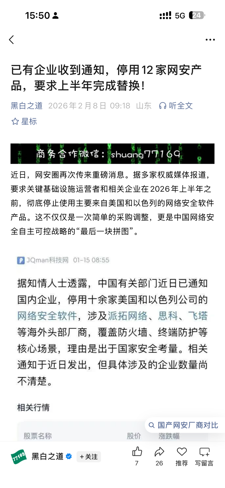 白天鹅来了.....已经有企业收到消息,停用国外网络安全....