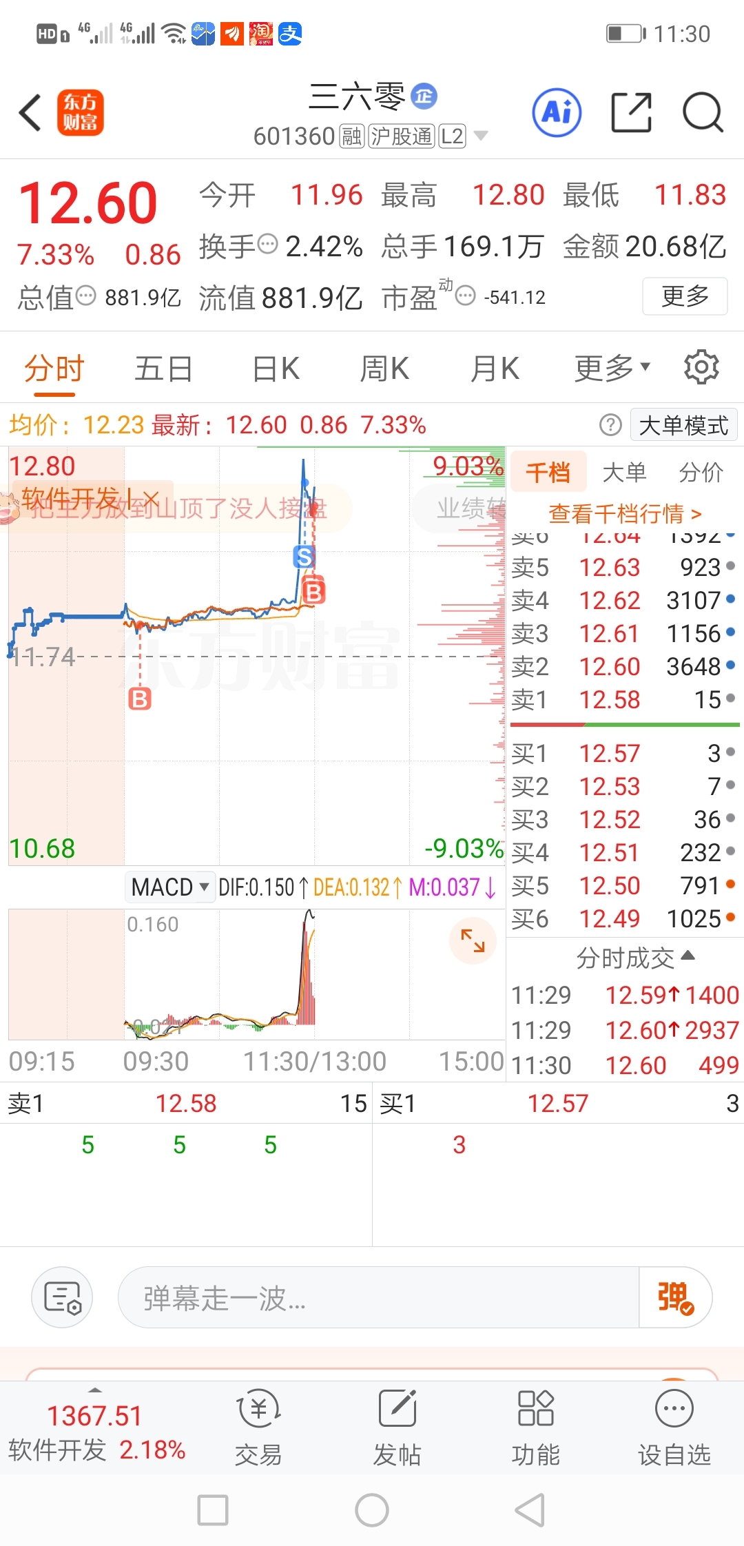 $三六零(SH601360)$ 今天最低点补仓,最高点把旧仓全出,回调有支撑再满仓了。明天见13!