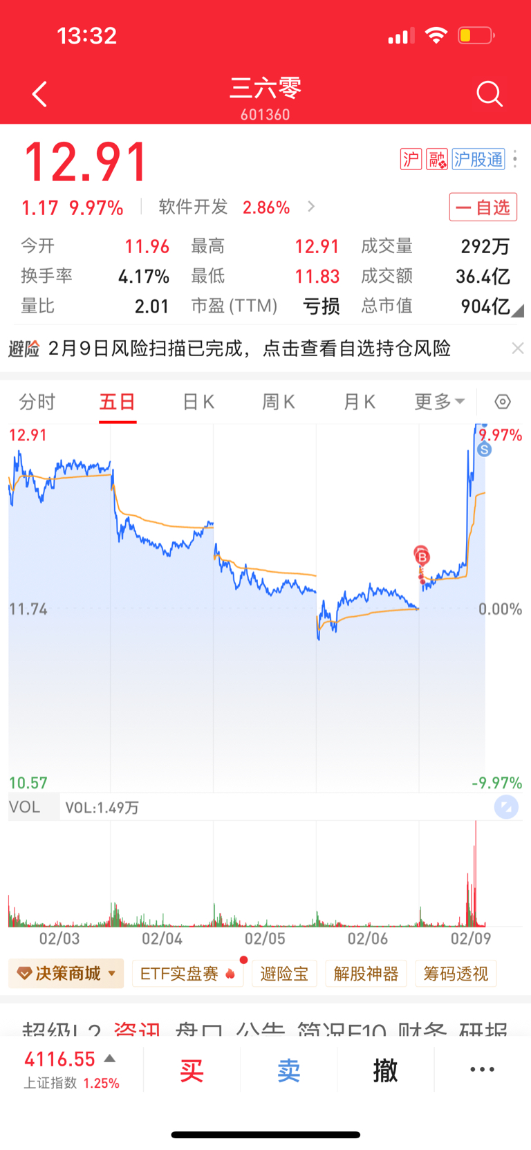 $三六零(SH601360)$ 挺感谢主力的,做了个T,