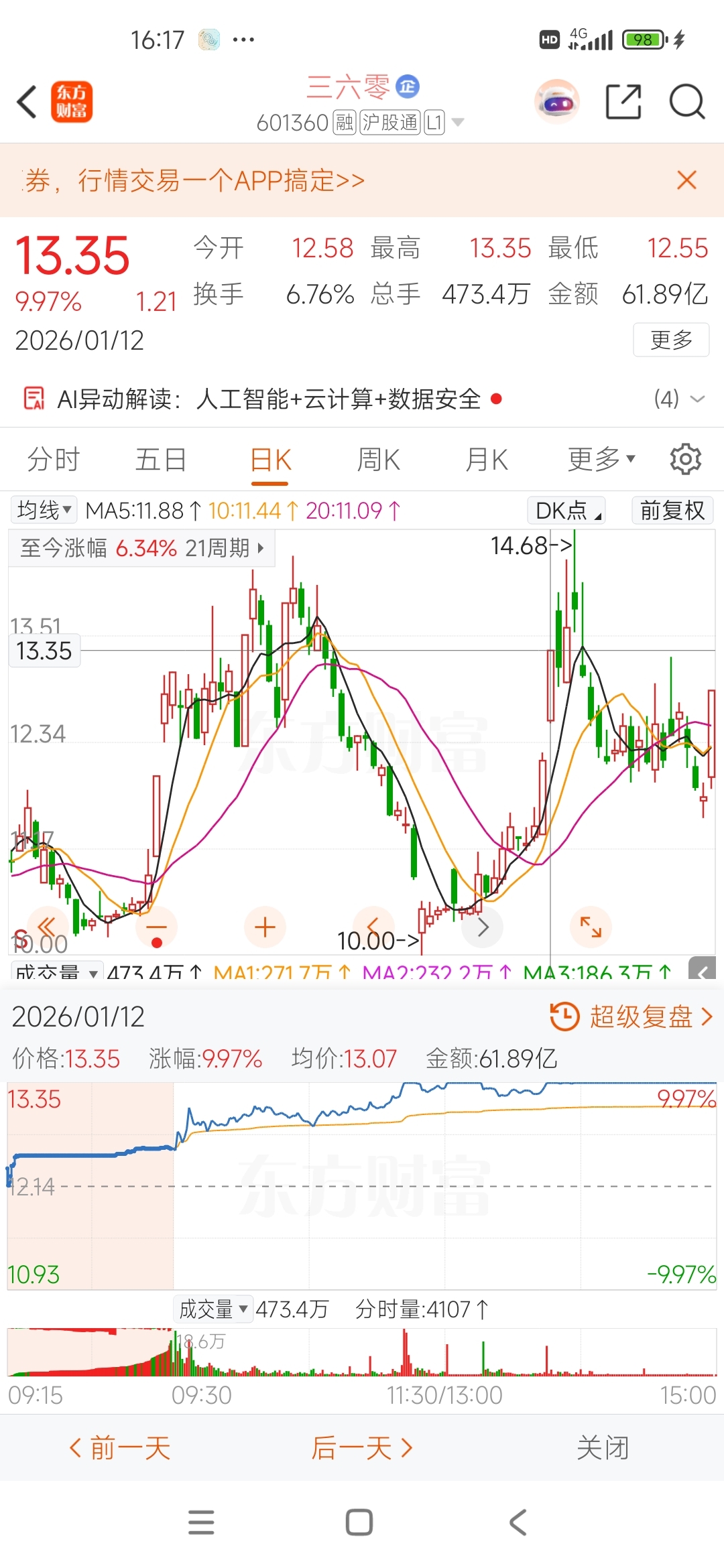 $三六零(SH601360)$