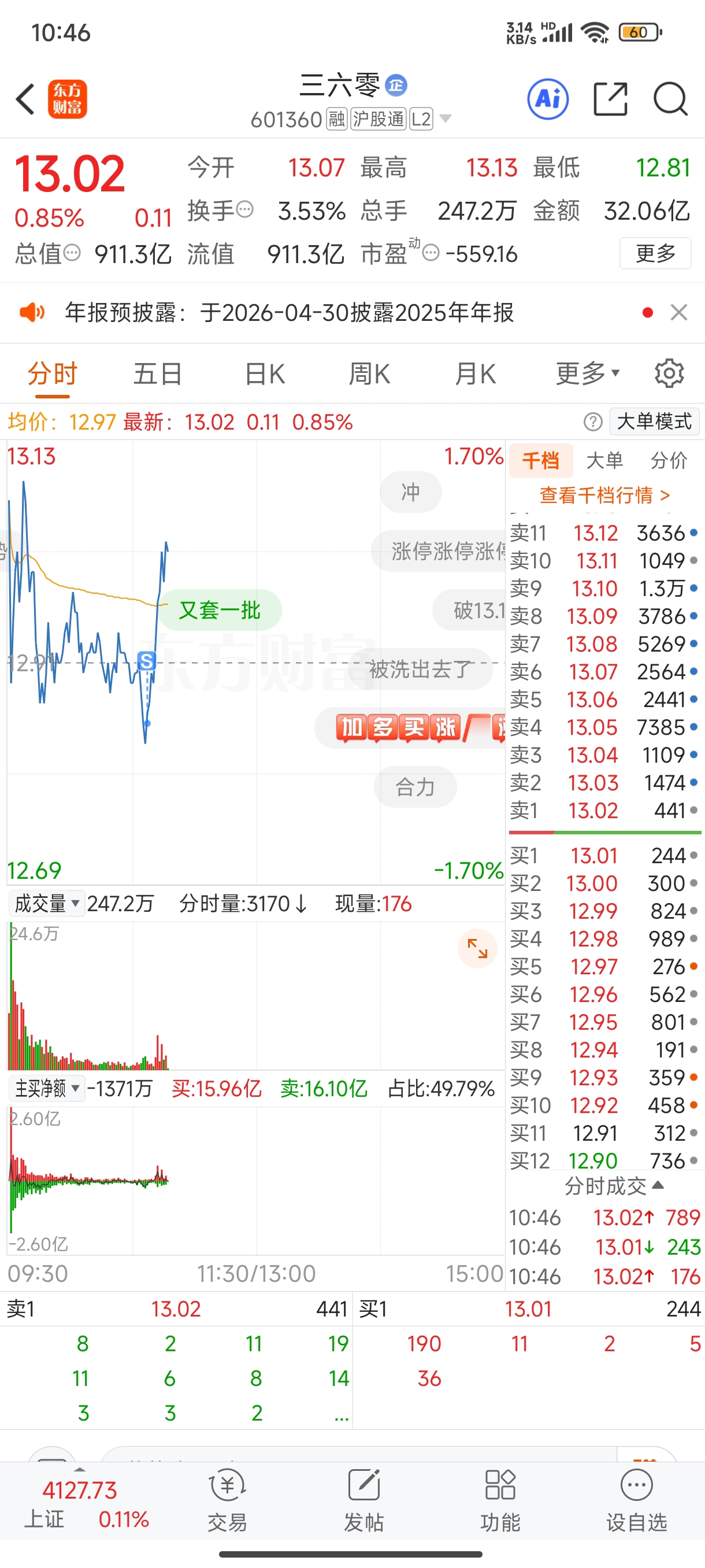 $三六零(SH601360)$ 我忍了一上午没卖,刚卖你就拉???